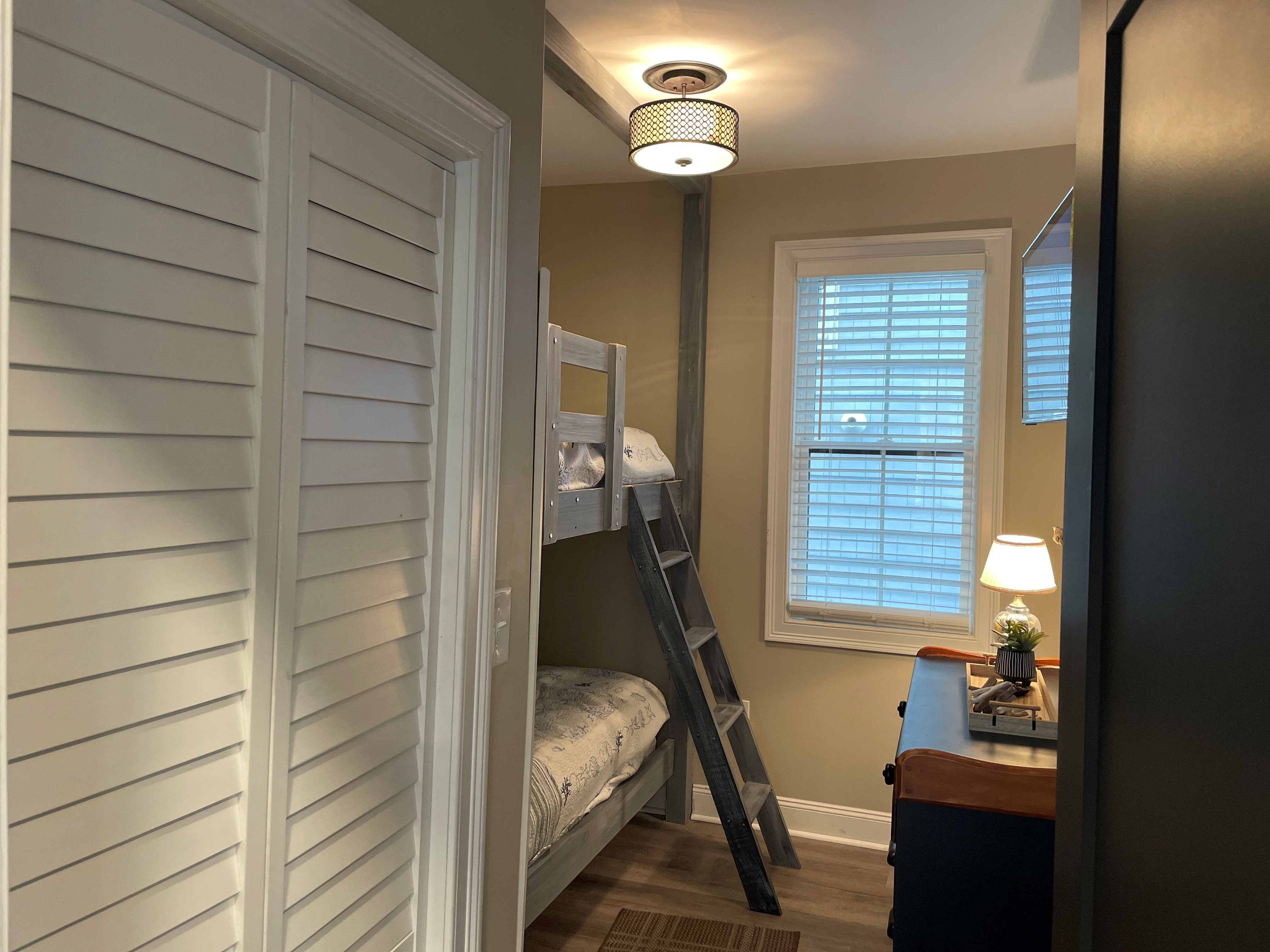 3 bedrooms with queen bed and 1 bedroom with bunk bed (full over full )
